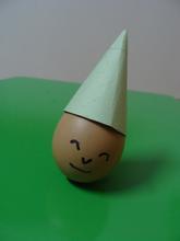 6.用剪刀将圆锥状纸片剪平,套在鸡蛋上。