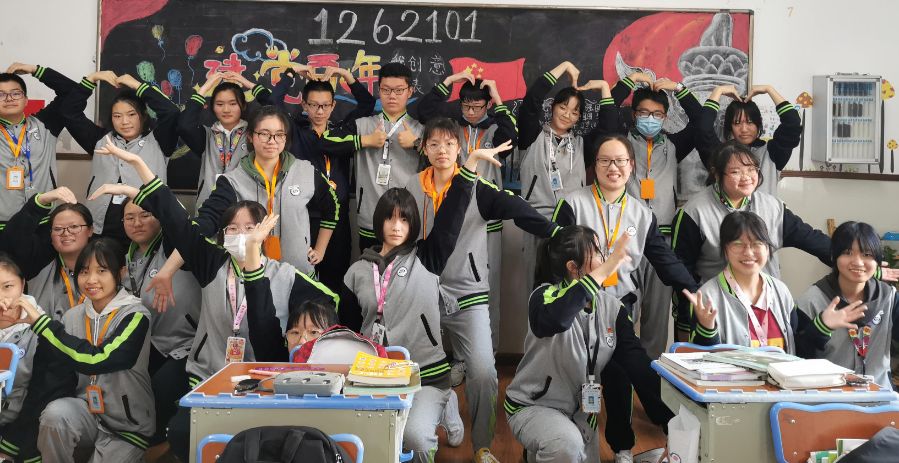 录制当天还下起了绵绵细雨,这使得户外的温度降低,同时也增加了拍摄的难度。可同学们丝毫未受到影响,干净整洁的校服、整齐划一的动作,形式多样的演绎方式,仿佛化身音符精灵尽情欢唱,唱出希望与美好,展现了我们班富有朝气的精神面貌。