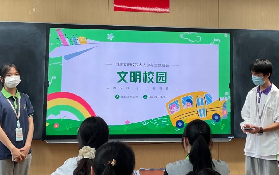 9.21开展了班会课!其中包括文明校园的的主题ppt和班级内的同学们进行文明校园的演讲比赛