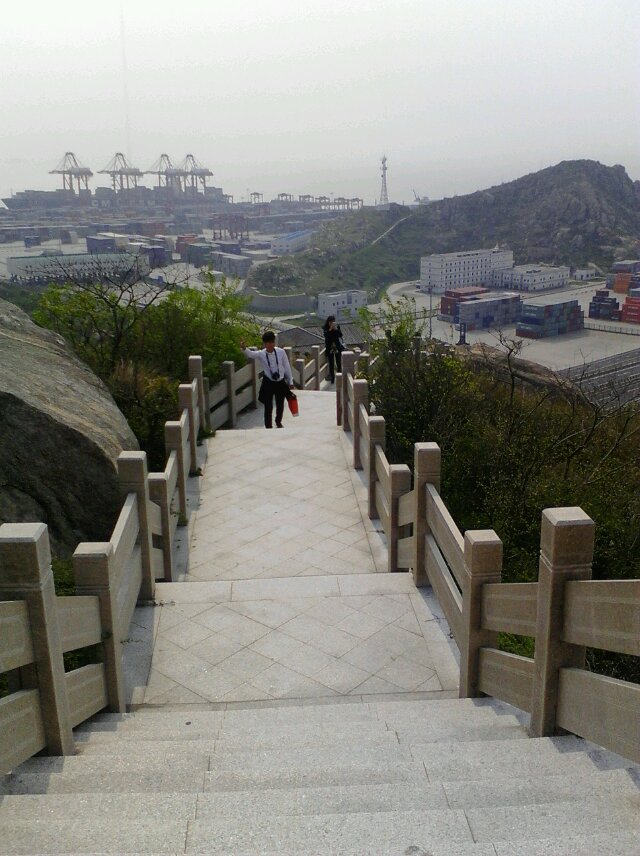 上次在家闲得无聊跟哥哥姐姐们去爬山,,这是东海大桥附近的一个小山包 不是很高但是爬上去还是把我们累的够呛。山上很多大石头开始必须走小路爬石头走草丛才能到达有楼梯的地方。对于我们这些不怎么运动的人来说真是个小挑战,不过最后我们还是坚持爬上了山顶看到了山下美丽的风景,这次旅行也算是值了。