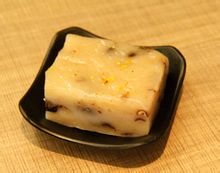 再来就是大家最喜欢的吃了~既然是传统佳节,那一定就有传统的流传至今的美食啦。说到重阳节,当然就要吃重阳糕了。据史料记载,重阳糕又称花糕、菊糕、五色糕,制无定法,较为随意。 九月九日天明时,以片糕搭儿女头额,口中念念有词,祝愿子女百事俱高,乃古人九月作糕的本意。讲究的重阳糕要作成九层,像座宝塔,上面还作成两只小羊,以符合重阳(羊)之义。有的还在重阳糕上插一小红纸旗,并点蜡烛灯。这大概是用“点灯”、“吃糕”代替“登高”的意思,用小红纸旗代替茱萸。当今的重阳糕,仍无固定品种,各地在重阳节吃的松软糕类都称之为重阳糕。在此附上一张图片,是不是很想吃呢(不过!也只能看看图片)